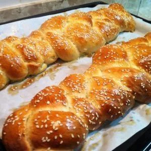 Já é a terceira vez que eu faço essa receita para o shabat e fica excelente!! !Recebo muitos elogios do meu marido e filhos! !!Ps:Em qualquer massa de pão eu sempre deixo o fermento desenvolver primeiro:pego 1 pacote de 10 gr do fermento biológico seco e junto as 15grs de açúcar + à água morna e misturo bem e tampo com um pano ou plástico e deixo uns 20 minutos crescendo….daí acrescento os outros ingredientes e faço todo o processo sitado à cima da receita! !!